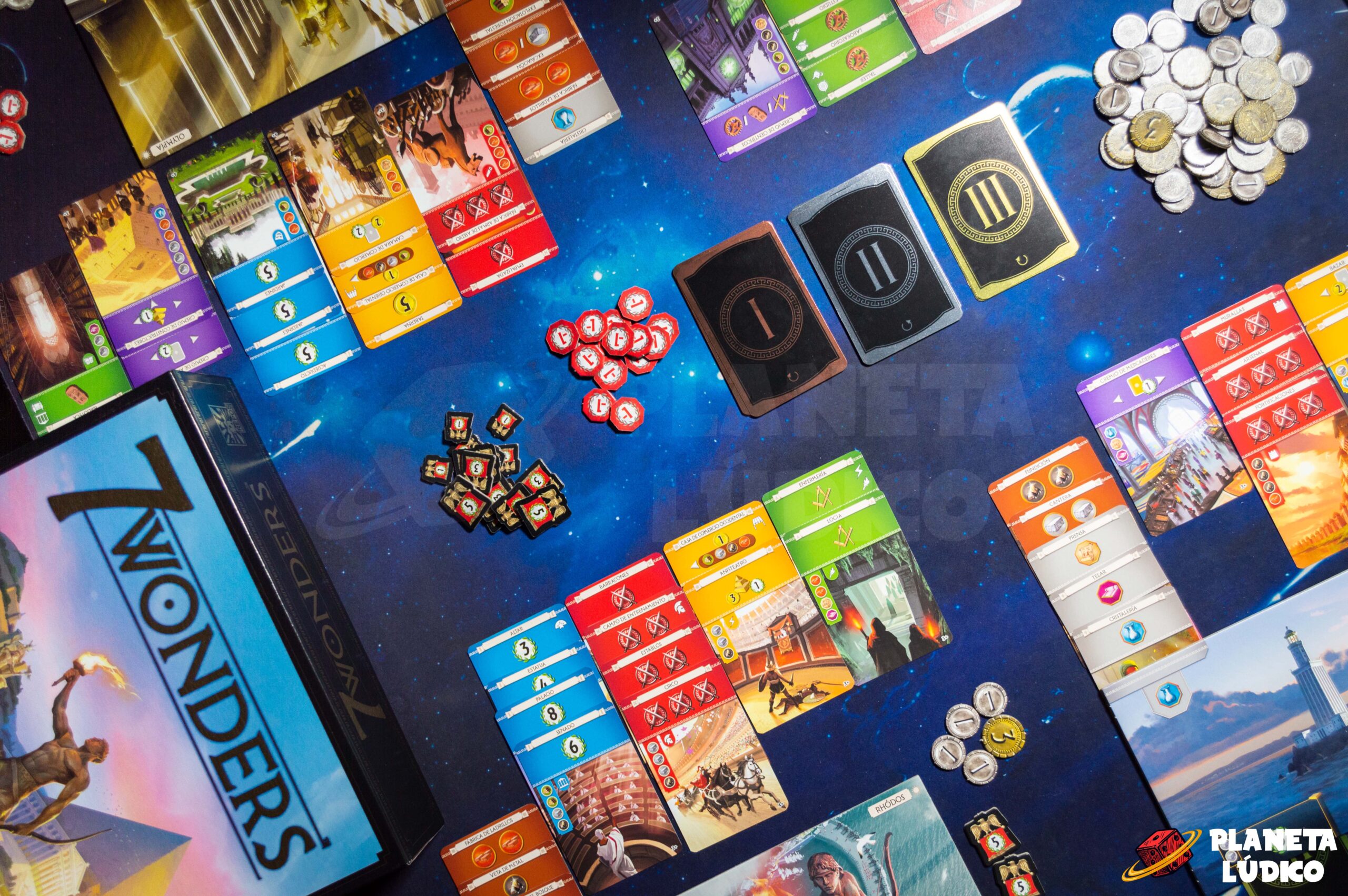 7 Wonders Nueva Edición es un juego de mesa de estrategia para 3 a 7 jugadores en el que cada participante desarrolla una civilización de la antigüedad a lo largo de tres eras. Mediante la mecánica de selección de cartas (draft), los jugadores construyen edificios, reúnen recursos, fortalecen su poder militar, avanzan en la ciencia y levantan una gran maravilla, con el objetivo de obtener la mayor cantidad de puntos de victoria al final de la partida.