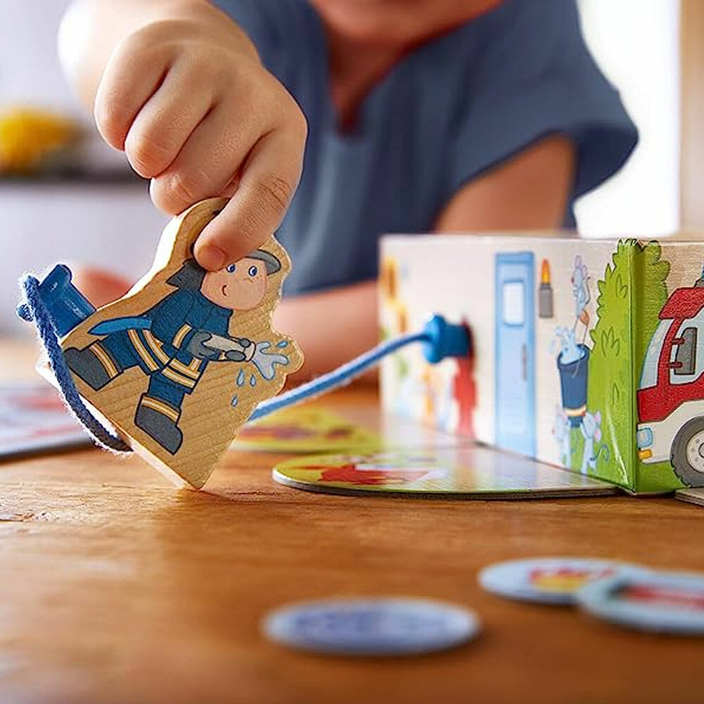 En este juego cooperativo, los niños ayudan al bombero Max a llegar al incendio lanzando un dado y gestionando fichas de manguera.