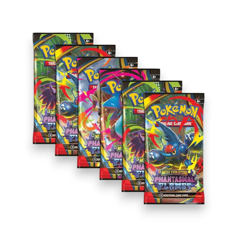 El Phantasmal Flame Booster Pack del Pokémon Trading Card Game es perfecto para jugadores y coleccionistas que buscan ampliar su colección y descubrir nuevas cartas poderosas. Cada sobre incluye cartas aleatorias del set Phantasmal Flame en inglés (ENG), ofreciendo la emoción de encontrar cartas raras, holográficas y Pokémon destacados.