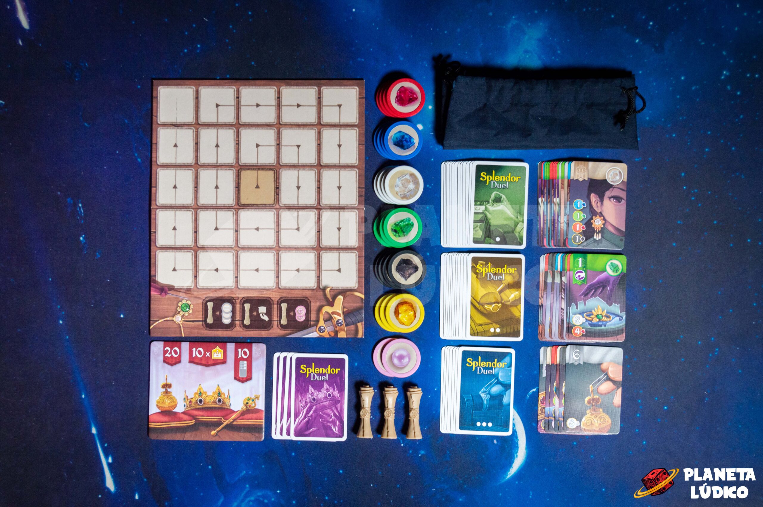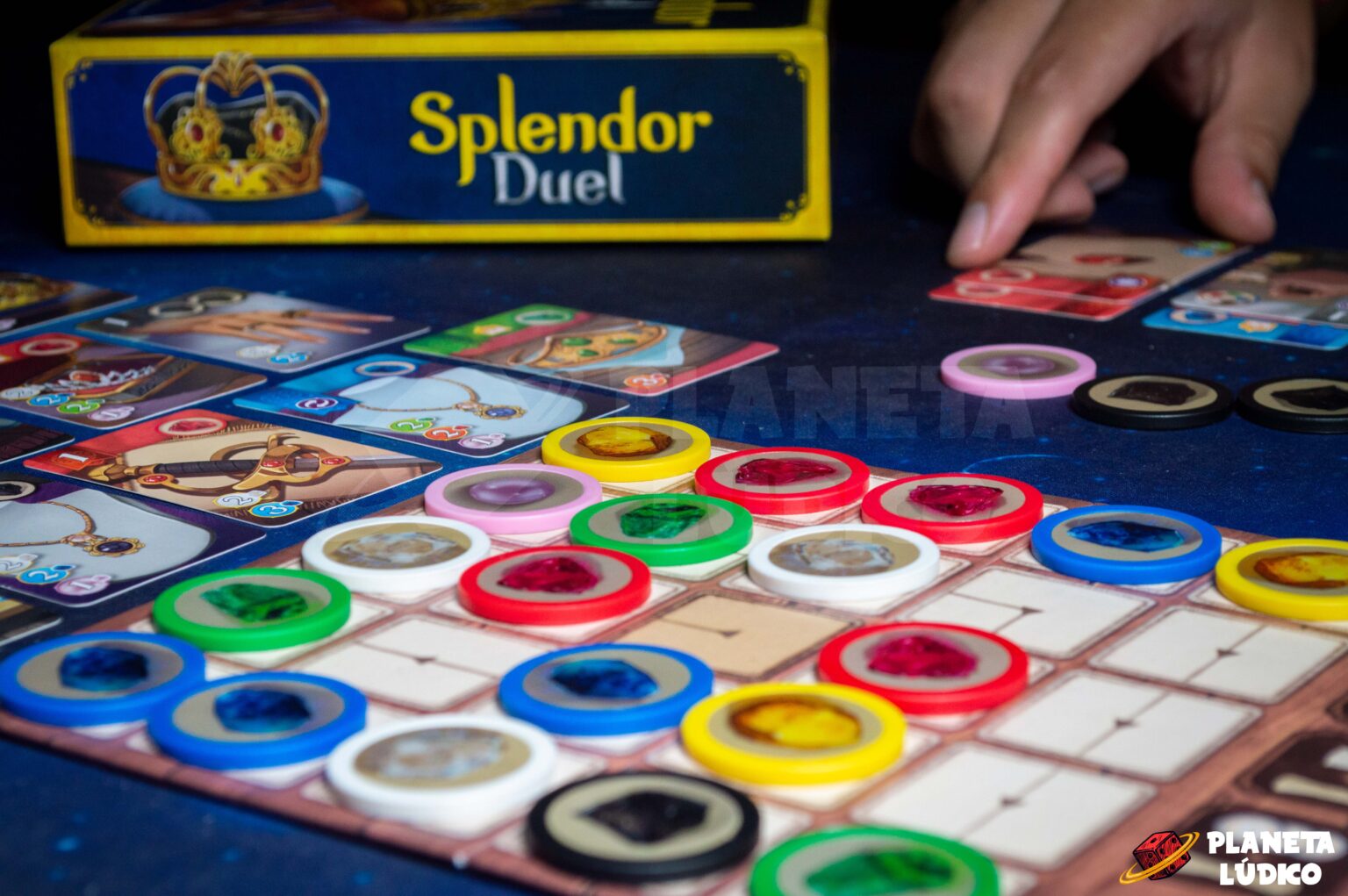 Splendor Duel es un juego de mesa estratégico para 2 jugadores donde te enfrentas a tu rival en una carrera por la victoria coleccionando fichas de gemas y perlas y comprando cartas de desarrollo que te dan bonificaciones, favores reales y prestigio. El juego mantiene la esencia del clásico Splendor, pero con nuevas mecánicas, tablero compartido y múltiples formas de ganar, haciendo las partidas más interactivas e intensas en unos 30 minutos.